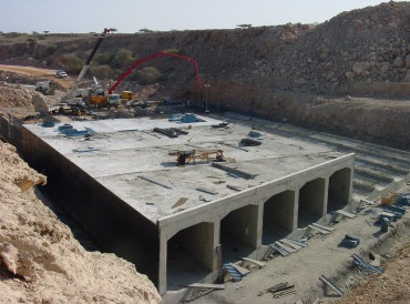 Döşeme Kalıp Sistemi olarak döşemede Çelik Pano Sistemi, Kalıp taşıyıcı sistem olarak Cup-Lock Kalıp İskelesi sistemi kullanılmıştır.5 mt. Kot yüksekliği ve 60 cm. döşeme kalınlığından dolayı yüksek yük taşıma kabiliyeti olan ve yanal yüklere karşı çok olumlu tepki veren sistem olarak Cup-Lock kalıp iskelesi sistemi seçilmiştir. Mukavemet değerlerinin çok yüksek olmasından dolayı Kalıp İskelesi çözümleri çok ekonomik olmuştur. Yatay bağlantılar her bir mt. bir adet bağlanmıştır. Projede yaklaşık 1.500 m3 kalıp iskelesi kullanılmıştır. Projenin Betonarme inşaatı 180 günde tamamlanmıştır.
